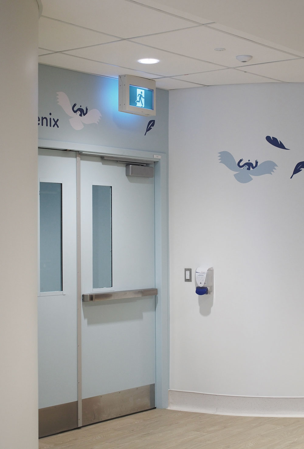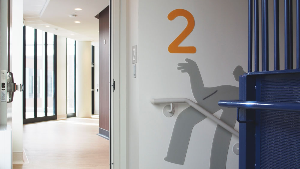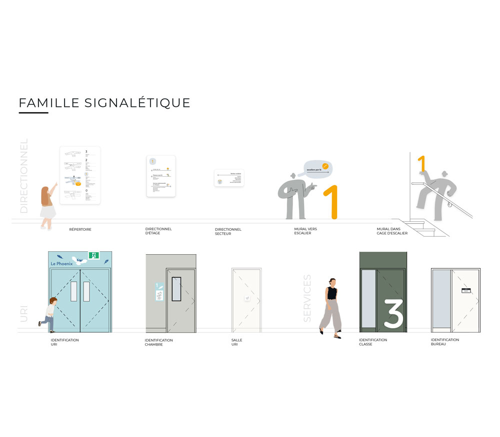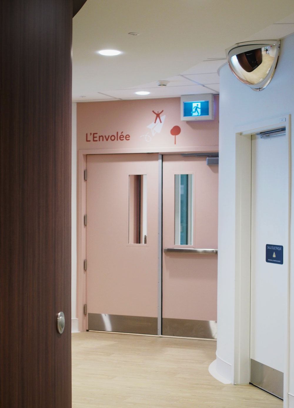Le projet de construction du Centre de réadaptation pour jeunes en difficulté d’adaptation (CRJDA) de Sainte-Thérèse se veut un milieu de vie transitoire où les jeunes seront guidés vers une réintégration sociale réussie. Le complexe, imaginé par ACDF, offre 90 places d’hébergement et inclut de nombreux services telles une pharmacie, des services cliniques, des salles de classes, un gymnase, une bibliothèque, une cafétéria, des parcs extérieurs et bien plus. Notre mandat consistait à élaborer le volet graphique, le développement technique et la planification finale de l’ensemble de la signalisation (intérieure, souterraine et extérieure) pour ce site totalisant une superficie intérieure de 12 000 m2 et un aménagement extérieur de 9700 m2.Comme l’endroit soutient une circulation importante, accueille une clientèle particulière et que celle-ci sera amenée à changer au fil du temps, une attention particulière a été portée à la durabilité et robustesse des éléments de signalisation. Au total, ce sont des milliers d’items qui ont été produits et installés pour répondre aux besoins spécifiques du site.